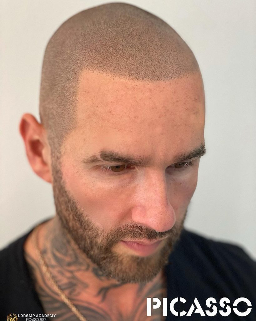 Scalp Micropigmentation (SMP) is a non-invasive procedure that replicates natural hair follicles using specialized pigment and precise needle depth. Each impression is carefully placed to simulate real follicle patterns — giving the appearance of natural density or a clean shaved look. At Picasso Scalp Micropigmentation San Diego, every treatment begins with detailed mapping of the scalp. We assess the client’s hair loss pattern, skin tone, and texture to achieve balance and realism in every session. Unlike generic SMP clinics, we don’t use templates. Every scalp is different — and every design is customized to suit the individual.